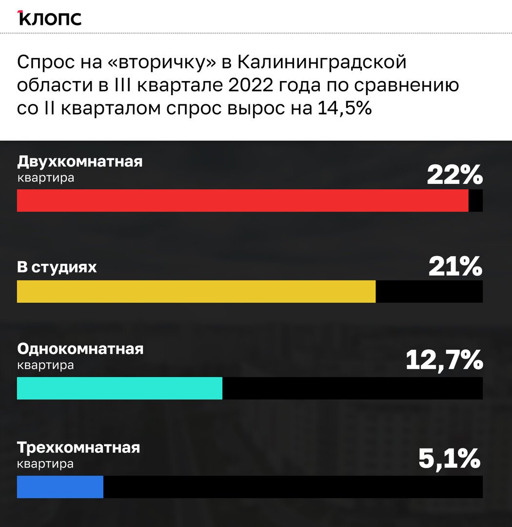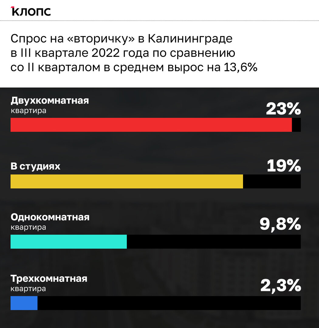 Калининградцы в третьем квартале этого года на 13,6% чаще интересовались вторичным фондом по сравнению с периодом апрель-июнь. Меньше всего обращали внимание на трёхкомнатные квартиры. В приоритете студии и «двушки».