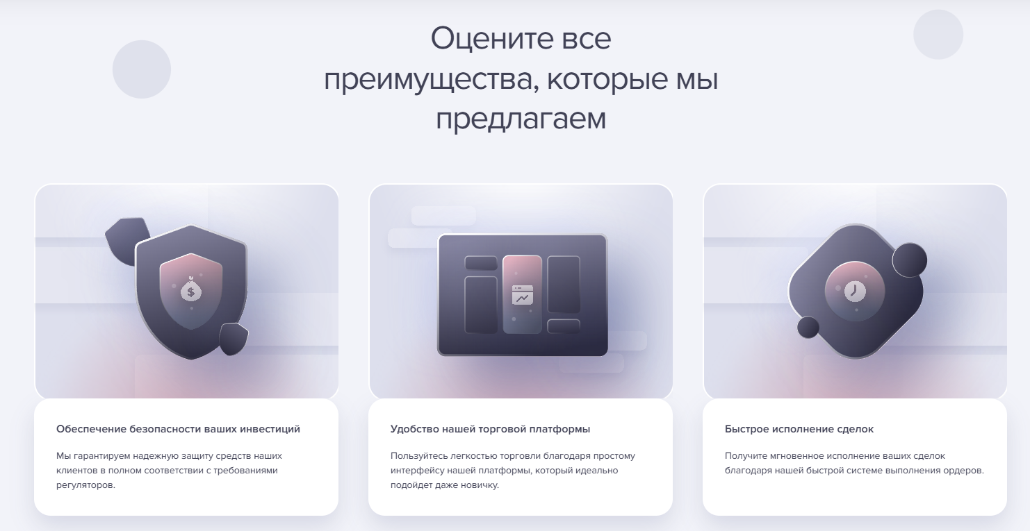 Брокер продвигает несколько тарифных планов, начиная с минимального депозита от 150 долларов. В каждом из них обещаются различные «бонусы»: персональный аналитик, страховка средств, доступ к дополнительным инструментам. Однако ни один из этих бонусов не имеет реального подтверждения.
