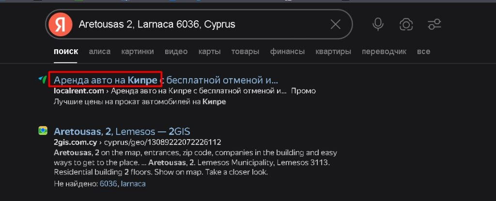 На сайте указан кипрский адрес Aretousas 2, Larnaca.
